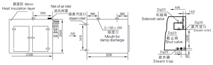 一、加热热源有蒸气、电、远红外、电蒸汽两用,供用户选择。