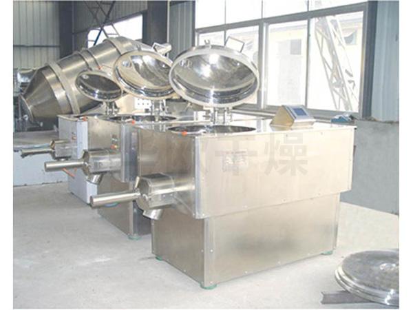 粉体物料与粘合剂在圆筒(锥形)形容器中,由底部混合浆充分混合成湿润软材,然后由侧置的高速粉碎桨切割成均匀的湿颗粒。