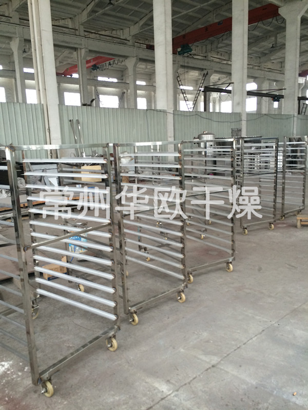 此款烘箱为外碳钢,内不锈钢制作完成,包含了6台烘车及144只烘盘